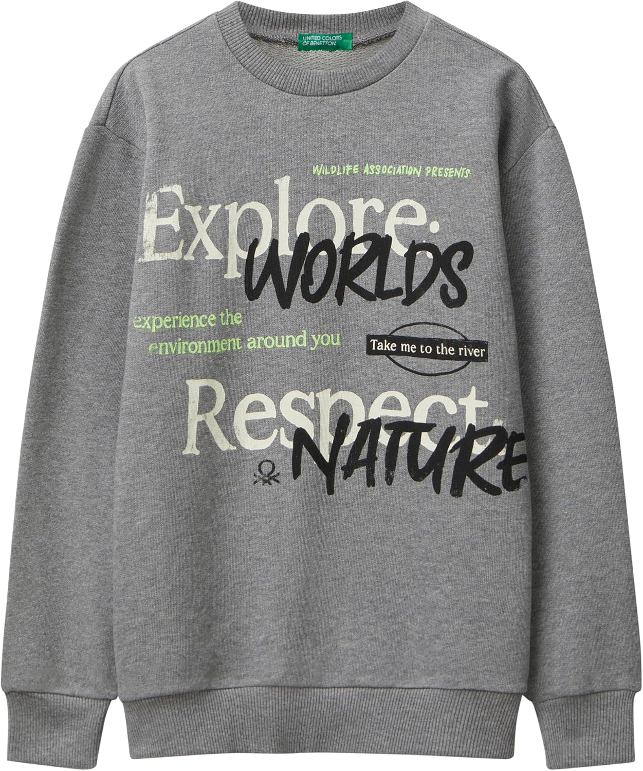 Questa felpa senza cappuccio di United Colors of Benetton unisce comfort e design contemporaneo. Realizzata in 100% cotone puro, offre una sensazione di morbidezza immediata sulla pelle. Il girocollo garantisce un fit comodo e pratico, mentre le stampe con vari soggetti aggiungono un tocco di personalità e stile giovane.