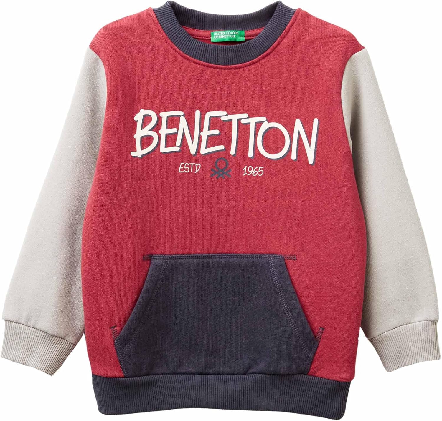 Questa felpa con cappuccio di United Colors of Benetton è realizzata in una comoda garzata, con design girocollo, polsi e fondo in costina per una vestibilità regolare. Include una pratica tasca marsupio e una stampa decorativa sulla parte anteriore, offrendo un look casual e moderno adatto ai più piccoli.