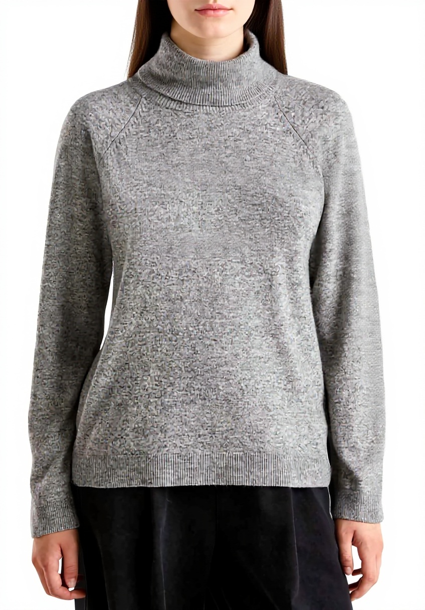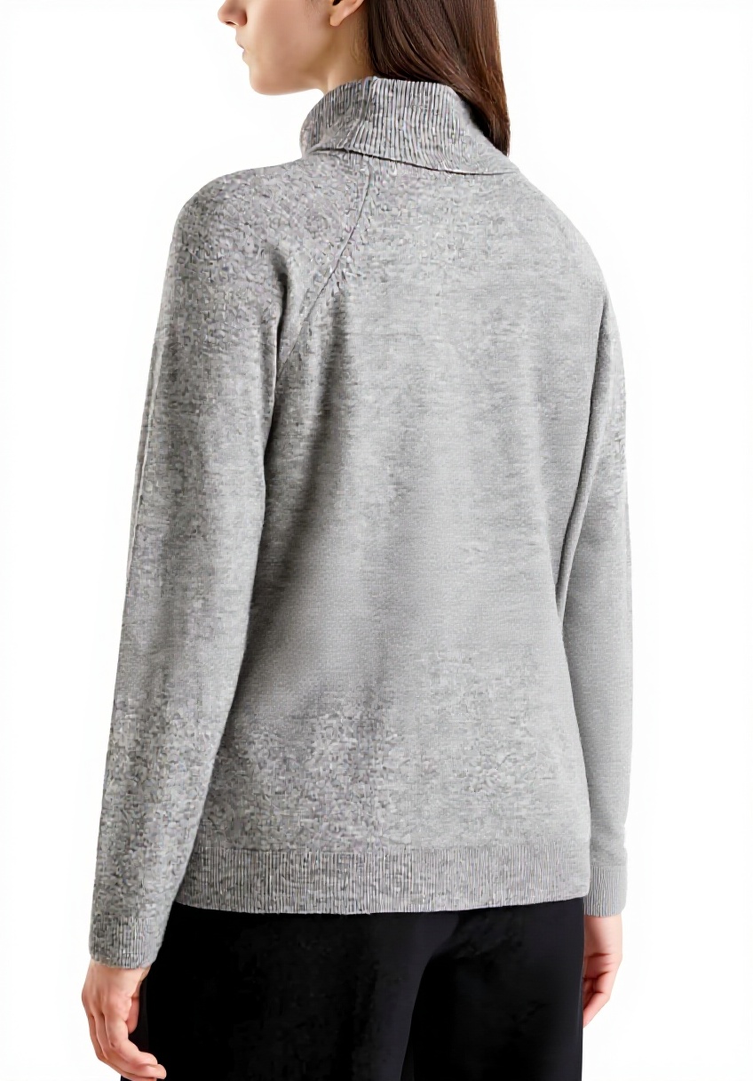 Realizzato in misto lana e cashmere, questo maglione offre un fit morbido e una lavorazione rasata che garantisce calore e leggerezza, con maniche raglan per una vestibilità ottimale e un collo alto che protegge dal freddo.